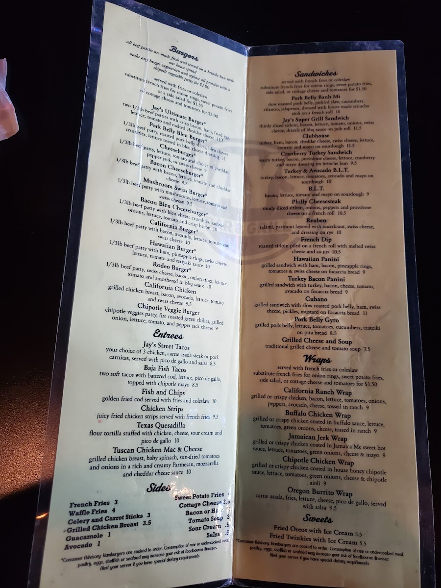Welcome to Jay's Bar and Grill, a cozy spot located in Happy Valley, Oregon, where food and camaraderie meet. Their menu boasts an array of delicious burgers, such as the classic Bacon Cheeseburger and the indulgent Jays Ultimate Burger, featuring two patties and a fried egg for those with hearty appetites. If you’re in the mood for something different, try their savory Teriyaki dishes or the tender Beef Short Ribs, all served with white rice and a mac salad.